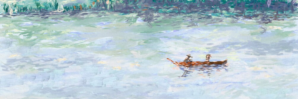 Paisaje de estilo impresionista titulado "Un bote rojo"